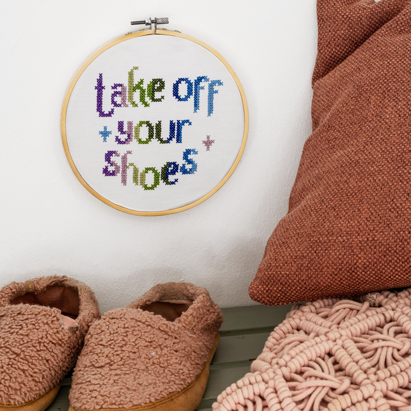 Dieses Stickbild an der Wand sagt uns, so zu bleiben, wie wir nun mal sind – mit allen Ecken und Kanten.